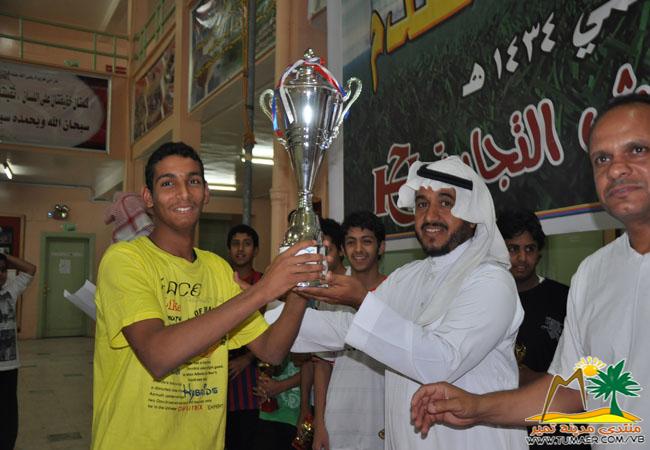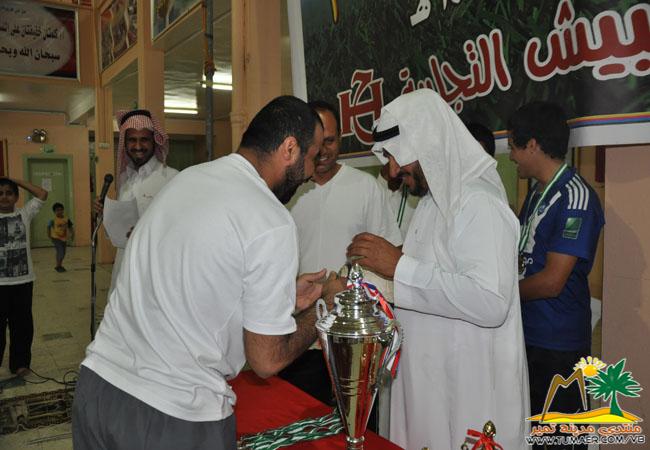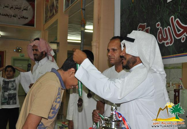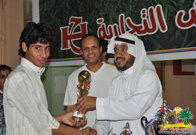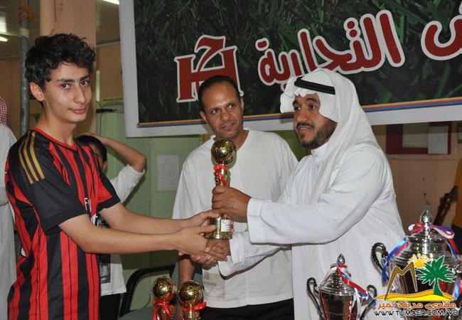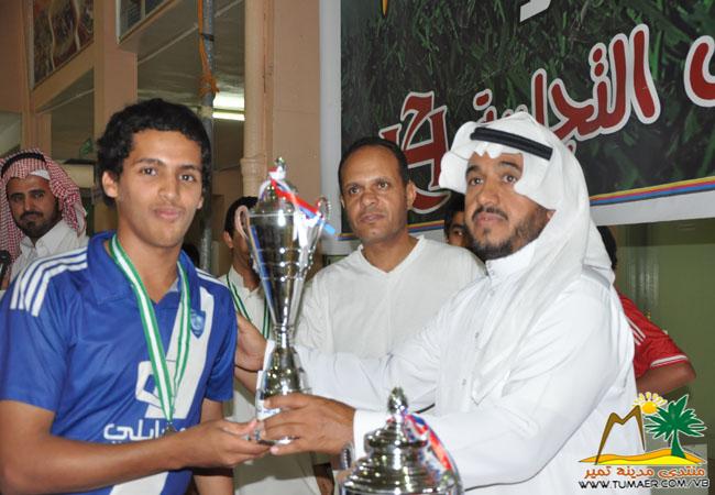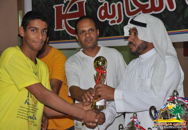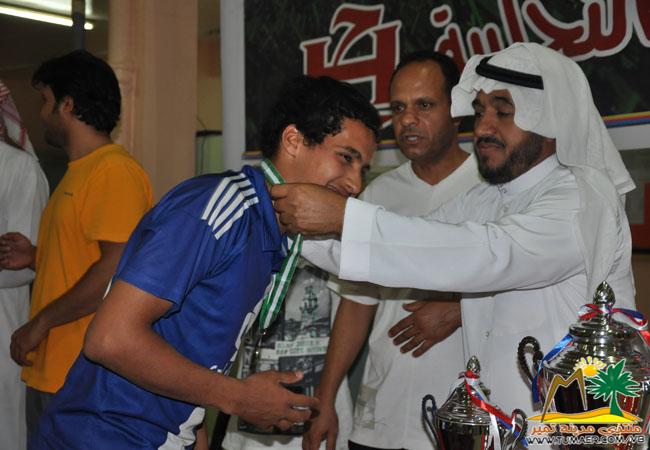 في يوم من أيام النادي المميزة تم بحمدالله إقامة نهائي دوري خماسيات كرة القدم لنادي تمير الموسمي الذي تميز بالفاعلية و الإثارة من قبل اللاعبين المبدعين وكانت المبارة الختامية بين فريقي (الشوكي * روضة الخشم) وقدما عرضاً مميزاً في هذا اليوم ونترككم مع بعض الصورالتي تتحدث عن الفعالية وبعد صلاة مغرب هذا اليوم تم تكريم اللاعبين 1- افضل حارس عبدالله الجوابره 2- افضل لاعب علي المنيع وتسلم الكأس قائد الفريق 3-هداف الدوري فهد الرشيدي ثم تم تكريم الفريق الحاصل على المركز الثاني وبعد ذلك تم تكريم الفريق الحاصل على المركز الاول وبعد ذلك تكريم حكم المبارة النهائية الاستاذ سلطان البرغش لقطة جماعية وليست هذه نهاية المطاف بل ندعوكم للتسجيل في دوري كرة الطائرة وتقبلو خالص التحية من احبتكم في اللجنة الاعلامية بنادي تمير الموسمي |