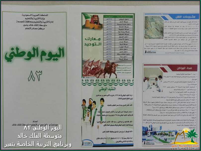 ![]() ![]() بذكرى اليوم الوطني الثالث والثمانين هذا اليوم الذي يعني للجميع الوحدة واللحمة الوطنية للملكة العربية السعودية على يد قائد ومؤسس و موحد هذه البلاد الملك / عبدالعزيز بن عبدالرحمن آل سعود مع رجال صادقون ومخلصون طيب الله ثراهم جميعا وأسكنهم فسيح جناته أقامت مدرسة متوسطة الملك خالد وبرنامج التربيه الفكرية بتمير يوم الأربعاء 1434/11/19هـ برنامجا احتفائيا بهذا اليوم الغالي على قلوبنا جميعاً بإشراف مدير المدرسة القائد التربوي الأستاذ الفاضل مشل بن ابراهيم الفيصل ورائد النشاط بالمدرسة الاستاذ ناصر بن عبدالعزيز المحيذيف وبحضور مدير مكتب التربيه والتعليم بتمير الاستاذ عبدالعزيز بن عبدالله الفيصل وزيارة المشرف فهد الشيحة وبحضور معلمي المدرسة جميعاً وبمتابعة الأستاذ وكيل المدرسة أحمد بن عبدالهادي المناع والمرشد الطلابي عبدالله بن محمد البرغش وشارك في متابعة ومراقبة الطلاب جميع معلمي المدرسة حيث كانت برامج الإحتفائية الوطنية التي نفذت خلال الدرس الأول والثاني على النحو التالي بالصور : التجــهيــــــــــــــــــــــــــــــــــز للاحتفاء كلمة للمرشد الطلابي بمناسبه هذا اليوم الطابور الصباحي والاذاعة المدرسية من اعداد الاستاذ / فلاح بن بتال السهلي بهذه المناسبة تفعيل الحصص للاحتفاء باليوم الوطني زيارة كشافة المدرسة لمركز تمير بقيادة القائد الكشفي الاستاذ \ ناصر عبدالعزيز المحيذيف كيكة اليوم الوطني لمعلمي وطلاب التربيه الخاصه بهذه المناسبة والشكر لمعلمين التربية الفكرية الاساتذة ( مغامس المغامس – فهد السليمان – ماجد اباحسين ) على جهودهم في اليوم الوطني. لوحات فنية ومطويات ورسائل وطنية مقتطفـــــــــــــــــــــــــــــــــــــــــــات التغطية الاعلامية الطالبين ( علي حمد المنيع – حمد اديب العثمان ) |
