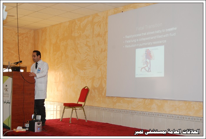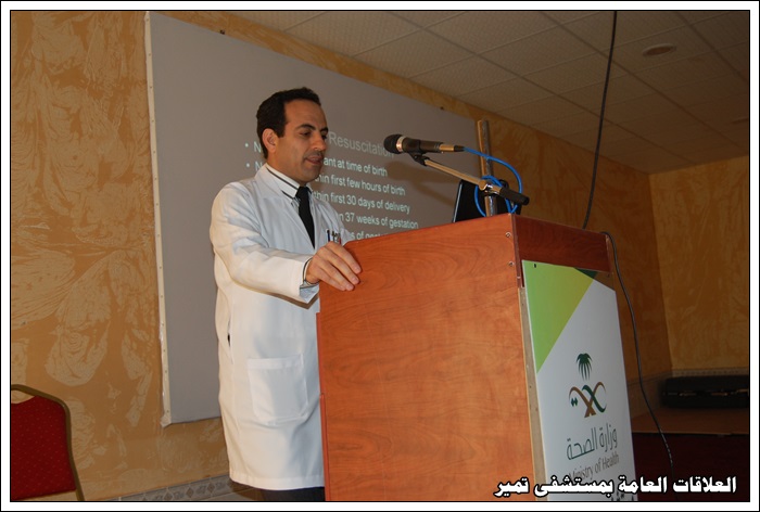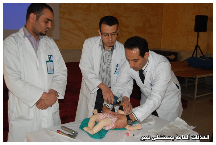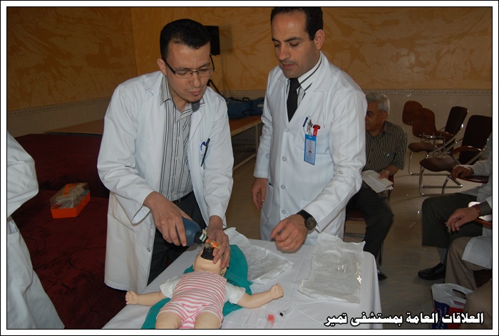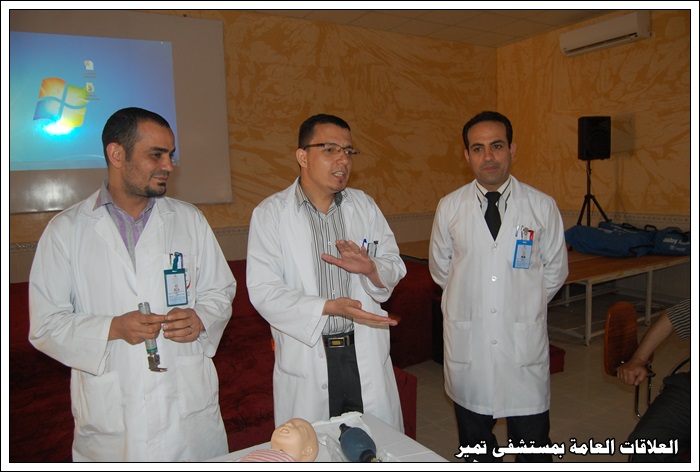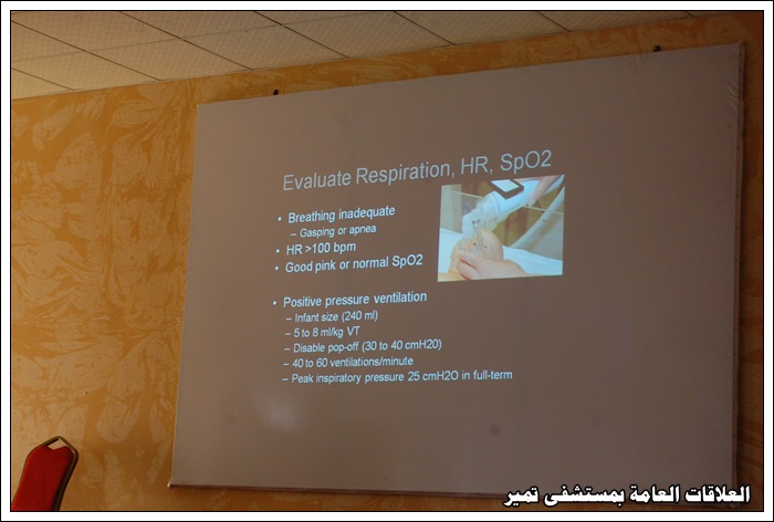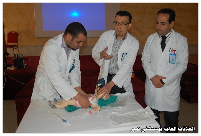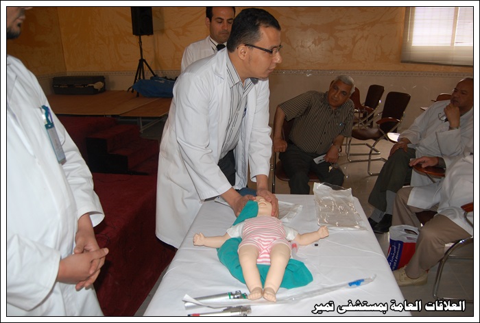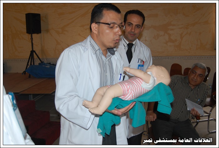 العلاقات العامة بمستشفى تمير أقام قسم التدريب والتعليم الطبي المستمر بالتعاون مع قسم الأطفال بمستشفى تمير العام دورة في المحافظة على سبل الحياة الأساسية ( C . P . R ) للخدج وحديثي الولادة اليوم الأثنين الموافق 21 / 6 / 1435هـ . حيث تم خلال هذه الدورة التدريب على كيفية التعامل في الحالات الإسعافية الطارئة واكتساب المهارات , وسرعة اتخاذ القرار ومهارات الإنعاش القلبي السريع والتي تعتبر أهم العوامل المؤثرة في إنقاذ حديثي الولادة باختلاف الحالات . أشرف على الدورة المدير الطبي بالمستشفى أخصائي الأطفال الدكتور / محمد خير الحمود وفي نهاية الدورة قدم الدكتور محمد خير الحمود شكره وتقديره للكادر الطبي والتمريضي المعنيين بحديثي الولادة . .. ..