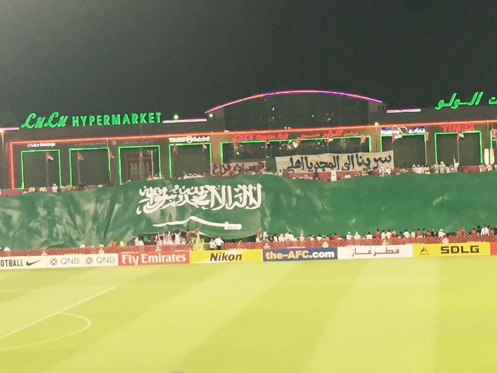 بالصور .. تيفو العلم السعودي في مباراة #الاهلي الاماراتي ضد “نفط طهران” الايراني