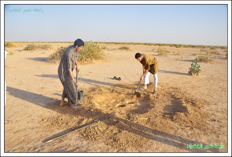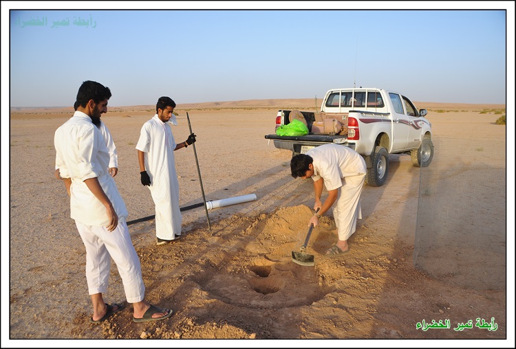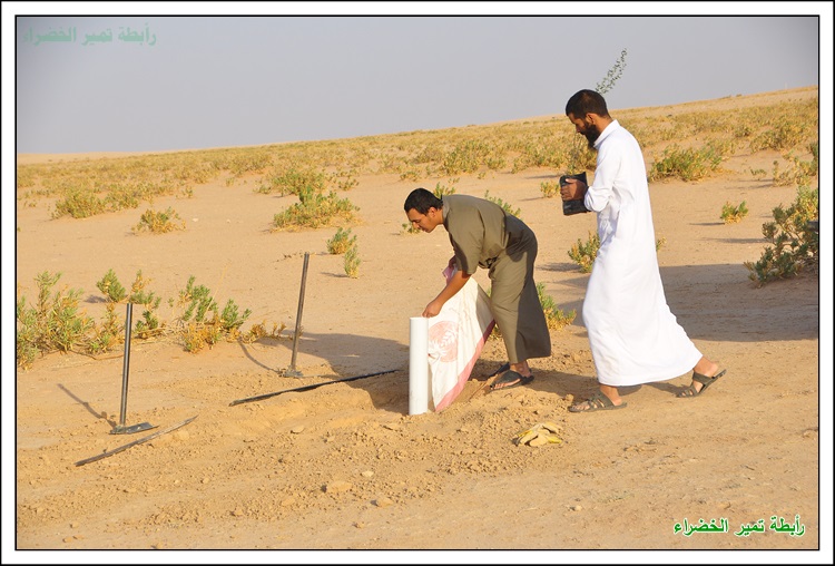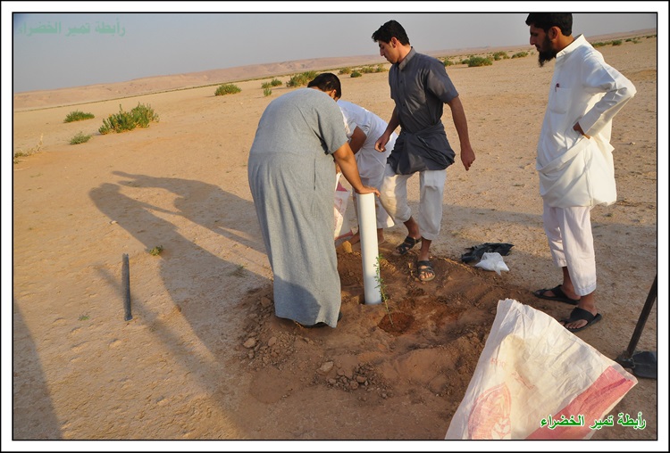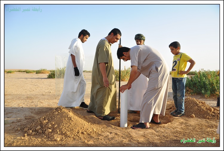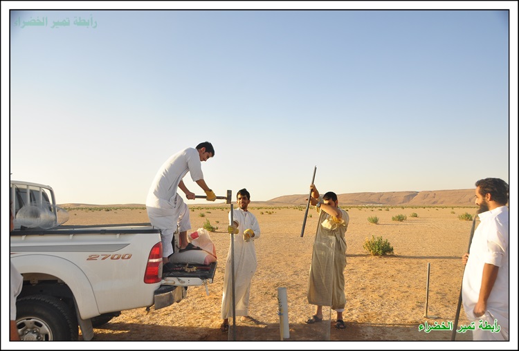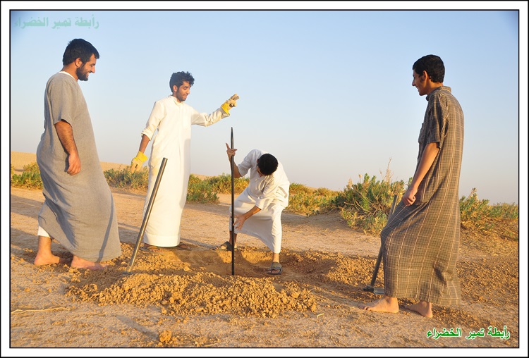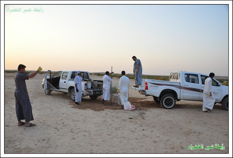 بسم الله الرحمن الرحيم السلام عليكم ورحمة الله وبركاتة عَنْ أَنَسَ بْنَ مَالِكٍ قَالَ: قَالَ رَسُولُ اللهِ صَلَّى اللهُ عَلَيْهِ وَسَلَّمَ: " إِنْ قَامَتِ السَّاعَةُ وَبِيَدِ أَحَدِكُمْ فَسِيلَةٌ، فَإِنْ اسْتَطَاعَ أَنْ لَا يَقُومَ حَتَّى يَغْرِسَهَا فَلْيَفْعَلْ " (مسند أحمد) بداية الحملة في 1 / 1 / 1438هـ مع دخول الوسم قام شباب تمير بزراعة أشجار الطلح في براري ومنتزهات تمير لزيادة الأشجار ومكافحة التصحر وللحفاظ على جمال البيئة ونشر الوعي البيئي وحب الطبيعة للغير بدعم مادي مفتوح للسنة الثانية من رجل الأعمال المحب للبيئة / محمد بن عبدالعزيز الحسين وبدعم بأشجار الطلح من الأستاذ / مشرف السلمي صاحب مدونة ابو سامي للطقس والبيئة فجزاهم الله كل خير ولهم منا كل الشكر والتقدير والأمتنان . كما أشكر كل من : الأستاذ / ريس بن علي البرغش . والأستاذ / إبراهيم بن سعود السلطان على ما قدموة لنا من دعم وتشجيع لنا في هذه الحملة المباركة باذن الله فجزاهم الله كل خير . وأشكر الأستاذ / خالد بن حمد الجميل على تبرعة لنا بجهاز حفر لتسهيل وكسب الوقت في زراعة الأشجار فجزاة الله عنا كل خير ووقفة في دنياة وأخرتة . وكل الشكر للأستاذ / حمد بن علي الصبيح على تبرعة لأقامة المناسبة بالأستراحة للرابطة للسنة الثانية فجزاة الله كل خير . كما نشكر الأستاذ / حمد بن عثمان البرغش على تصميم شعار الرابطة وعلى ما يقدمة من لنا من الدعم المعنوي للفريق وكل الشكر والتقدير للمشاركين في هذه الحملة وجزاهم الله كل خير وهم كل من : حملة التشجير جائت على شكل كشتة وسعة صدر وضحك ووناسة وكل يوم عصر نزرع 3 الى 4 شتلات حسب الوقت بسم الله وعلى بركة الله يتم حفر حفرتين وحدة للشجرة والاخرى للماصورة البلاستك 4 بوصة المثقوبة من الاسفل لري الشجرة وحوض واسع بعمق 10 سم وعرض متر تقريباً تركيب الشبك لحماية الشجره الشكل النهائي للشجرة بعد نهاية العمل بيالة شاهي تعدل الراس ونتكلم عن أفكار ونتجنب الاخطاء في المرات القادمة ويبداء يوم جديد يملأة الحماس لزراعة الأشجار بنفس الطريقه السابقة وفي موقع أخر وكل يوم في مكان اخر لزراعة أشجار الطلح في براري ومنتزهات تمير يوم جديد ومكان جديد وانضمام شباب جدد كل يوم وللصغار مشاركة معنا البسملة اثناء غرس الاشجار وفي كل بداية تركيب الماسورة البلاستك لري الشجرة من الأسفل العمل بروح واحدة تجهيز الشاهي فيما ينتهون الشباب من باقي الاشجار صورة جماعية وجلسة شرب الشاهي ومن يوم الى يوم ومن مكان الى أخر يزراد حماس الشباب لزراعة الاشجار زراعة الشجرة الاخرى في نفس الموقع يوم يتلوة يوم يزداد التوسع في المنطقة لزراعة الاشجار البرية في المنتزهات ضحك ووناسة وعمل بروح عالية الله يطرح فيها البركة الجلسة النهائية للشباب بعد نهاية العمل ولتحديد موقع أخر في الغد لزراعة أشجار فيه وفي موقع اخر من المواقع التي انقطعت فيها الاشجار نزرعها ونحيها باذن الله مادام عملنا لوجهه الله العمل على جهاز الحفر المقدم من الأستاذ / خالد الجميل لشباب تمير وتجربتة في هذه الحملة فقد وفر لنا الوقت والجهد فجزاة الله كل خير أجتماع فريق التشجير التطوعي بتمير وتحويل الفريق الى رابطة تمير الخضراء ونتمنى من الله التوفيق لنا في أعمال الخير صورة جماعية لأعضاء الرابطة قص الترتة بأعلان الرابطة أجتماع بعض أعضاء الرابطة مع رئيس بلدية تمير الأستاذ / محمد بن سعود السلطان وتم تكريم أعضاء الرابطة ومناقشة بعض الأمور التي تهتم بالمنتزهات البرية والمتنزهين مونتاج لزراعة الاشجار في براري ومنتزهات تمير .................................................. ........ ذكر لنا انه يوجد مادة أسمها ( البوليمر ) تساعد على تخفيض أستهلاك الماء ومضاعفة الانتاج وتستوعب ضعف حجمها من الماء بما يقارب 400 الى 600 وتعمل تحت التربة لمدة 8 الى 10 سنوات وجربناها وفي انتظار النتائج وهذا مقطع من مونتاجنا لها .................................................. ......... فديو : شباب تمير يقومون بتركيب شبوك على الاشجار التى كبرت وضاق عليها الشب