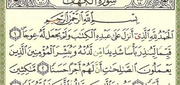 القصص الخمسة في سورة الكهف قصة أصحاب الكهف وهي القصة التي نزلت على الرسول صلى الله عليه وسلم عند محاولة قريشٍ اختبار الرسول صلى الله عليه وسلم فبعثوا إلى اليهود، وأشاروا عليهم أن يسألوا النبي الكريم عن قصة أصحاب الكهف، فأنزل الله تعالى هذه الآيات عليه صلى الله عليه وسلم مبيناً صدقه لهم، ومخبرهم بقصة أصحاب الكهف، ومبيناً له صلى الله عليه وسلم ولقريشٍ بأنّ قصتهم ليست بالأمر العظيم في قدرة الله تعالى وآياته المعجزة. قصة صاحب الجنتينوقصة أصحاب الكهف هي أنّهم بضعة فتيةٍ آمنوا بالله تعالى، فهداهم إلى طريق الرشاد والصلاح، وقرروا بعد ذلك الخروج عن قومهم والهروب منهم خشية الوقوع بالفتنة، فذهب هؤلاء الفتية إلى الكهف وعندما دخلوه، جلس كلبهم الذي رافقهم على الباب ليحرسهم، وأنامهم الله مدةً طويلةً هو أعلم بها، يقلبهم من جنبٍ إلى الآخر كما قال تعالى: (وَتَرَى الشَّمْسَ إِذَا طَلَعَت تَّزَاوَرُ عَن كَهْفِهِمْ ذَاتَ الْيَمِينِ وَإِذَا غَرَبَت تَّقْرِضُهُمْ ذَاتَ الشِّمَالِ وَهُمْ فِي فَجْوَةٍ مِّنْهُ ذَلِكَ مِنْ آيَاتِ اللهِ مَن يَهْدِ اللهُ فَهُوَ الْمُهْتَدِ وَمَن يُضْلِلْ فَلَن تَجِدَ لَهُ وَلِيًّا مُّرْشِدًا) [الكهف: 18] حتى أحياهم الله مرةً أخرى فبعثوا أحدهم إلى المدينة ليشتري لهم بعض الطعام وهم يجهلون المدة التي لبثوها، ولكنّ أهل المدينة استنكروه لشكله ومظهره ولباسه ودراهمه التي كان يحملها، إذ إنّه خلال رقودهم لهذه المدة الطويلة كانت قد تغيرت أحوال الدنيا فبعثوا به إلى الملك خوفاً من أن يكون جاسوساً، وهنا ذهب مع الملك إلى الكهف، ودخل على إخوانه وأخبرهم بالمدة التي رقدوها من دون طعامٍ أو شرابٍ، ويقال إنّهم ماتوا بعد ذلك وبقوا في الكهف. وهي القصة الثانية في سورة الكهف والتي تتحدث عن شخص مؤمنٍ بالله تعالى وآخر كافرٍ به والحوار الذي دار بينهما، حيث أعطاهما الله تعالى مالاً فأنفق المؤمن ماله في مرضاة الله تعالى بينما جحد الكافر بنعم الله تعالى عليه فكانت له جنتان وأولادٌ ومالٌ وفير، وكان يتفاخر بهذا المال كلّه أمام المؤمن ويستهزئ به ويشكك في قدرة الله تعالى فيقول: (وَمَا أَظُنُّ السَّاعَةَ قَائِمَةً وَلَئِن رُّدِدتُّ إِلَى رَبِّي لَأَجِدَنَّ خَيْرًا مِّنْهَا مُنقَلَبًا) [الكهف: 36]، فأخذ المؤمن يحاوره ويبين له آيات الله تعالى في الأرض وأدلّة على قدرته تعالى على البعث والإحياء، ولكن محاولات هدايته للكافر كانت بلا جدوى، فدمّر الله تعالى جنتيه، وحينها ندم الكافر على جحده لنعم الله تعالى وأصبح يتمنى لو أنّه آمن وتواضع. قصة آدم وإبليستذكر سورة الكهف بشكلٍ مختصرٍ قصة آدم عليه السلام وإبليس اللعين عند تكبره على الله تعالى، وعدم سجوده لآدم عليه السلام عندما أمره الله تعالى والملائكة بهذا، ويحذر الله الناس من اتخاذه وذريته أولياء من دونه تعالى. قصة موسى والخضرتتحدث هذه الآيات عن جانبٍ آخر من حياة موسى عليه السلام، إذ إنّه عليه السلام كما ورد عن الرسول صلى الله عليه وسلم في البخاري أنّه سُئل أيّ الناس أعلم؟ فقال موسى عليه السلام: أنا، فعاتبه الله تعالى، إذ إنّه لم يردّ العلم إليه وأمره أن يذهب إلى شخص أعلم منه وأعطاه العلامة وهي أن يحمل حوتاً مملوحاً معه هو وفتاه وحيث يفقدانه يكون ذاك الرجل، وعندما وجدا الخضر طلب منه موسى عليه السلام أن يعلمه إلّا أنّه قال له إنّه لن يصبر على ما سيراه منه؛ لأنّه لم يعلم السبب وراءه، وحينها أخبره موسى عليه السلام بأنّه سيكون صابراً إن شاء الله وسيطيعه، وكان شرط الخضر عندها ألا يسأله عن أيّ شيءٍ حتى يحدثه به هو من نفسه، فانطلقا مع بعضهما ومرا على ثلاثة مواضع ذكرها الله تعالى، إلّا أنّ موسى عليه السلام لم يطق وعاود سؤاله في كلّ مرةٍ، وحينها أخبره الخضر بالأسباب التي دفعته لفعل ما فعله وفارقه، وبهذا يعلمنا الله تعالى أنّ علمه لا ينفد وأنّ علمنا هو جزءٌ صغير جداً لا يذكر مقارنةً بعلمه سبحانه وتعالى. قصة ذي القرنينذو القرنين هو ملكٌ صالح