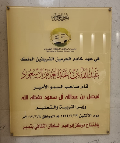 ![]() تم أفتتح مركز الشيخ إبراهيم السلطان الثقافي في يوم الاثنين الموافق 1434/3/23هـ 2013/2/4م برعاية وزير التربية والتعليم صاحب السمو الأمير/ فيصل بن عبدالله ال سعود حيث يحتوي المركز مبنيين : قسم للمسرح مجهز بالكامل من دورين مع وجود مصعدين للرجال والنساء وقسم مجهز للضيافه والاستقبال وصالة طعام تتسع 120 شخص وكذلك إستراحة للنساء ومكاتب إدارية وقاعات مخصصه للتدريب لوحة شرفيه لضيوف جائزة ابراهيم السلطان للتفوق والإبداع العلمي يحتوي المركز صالة أستقبال تتسع (120) شخص كذلك يحتوي على المبنى على مسرح مجهز يتسع (700) شخص يحتوي المبنى الاداري على ثلاث صالات للتدريب كذلك يحتوي على مكاتب ادارية // |