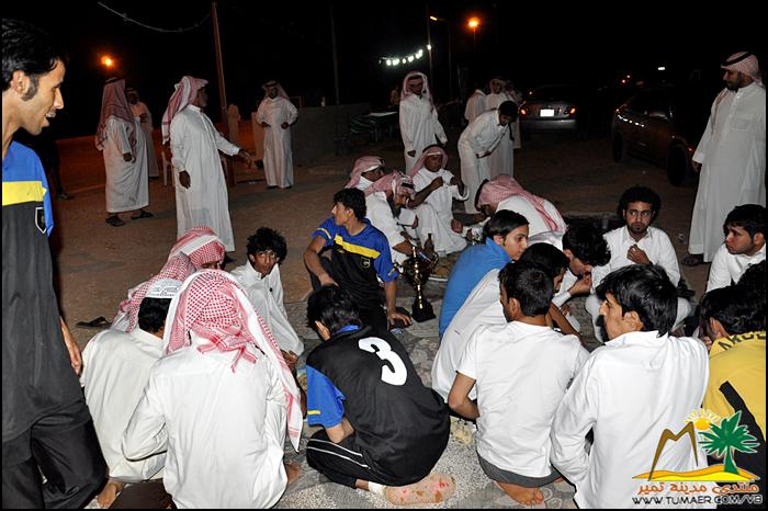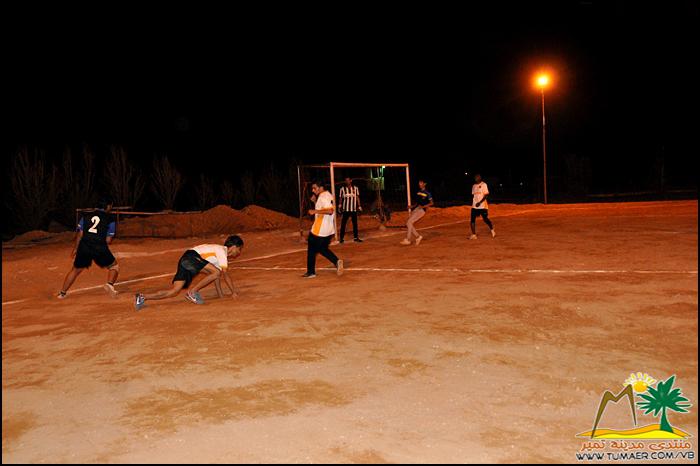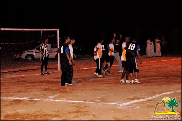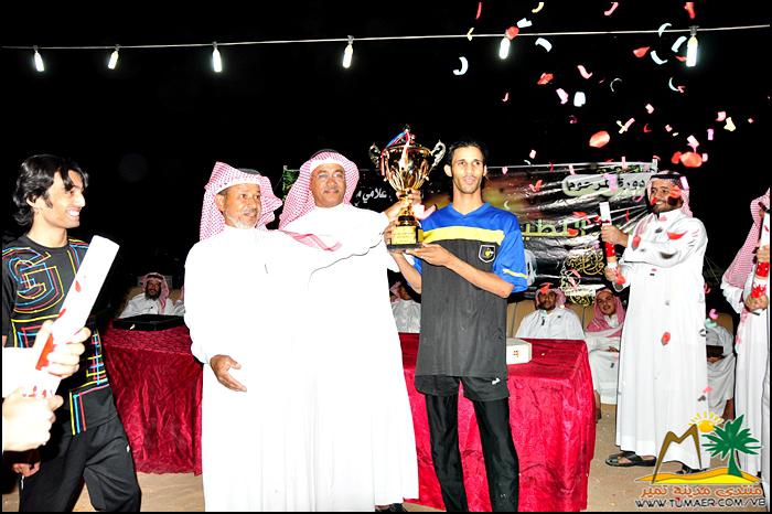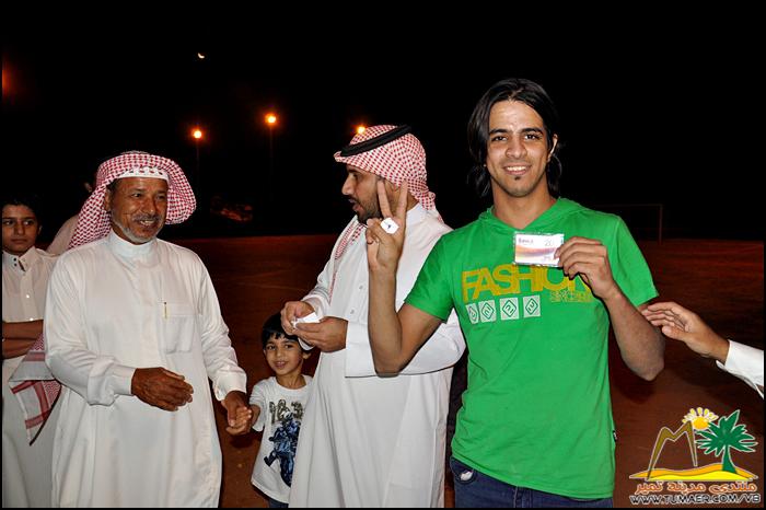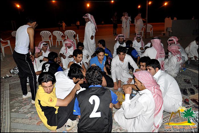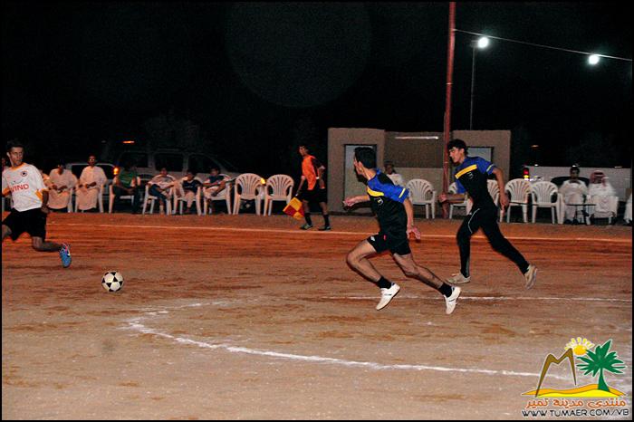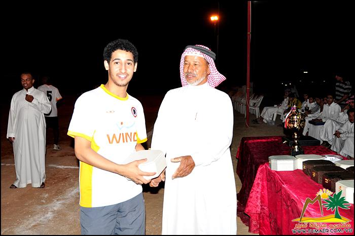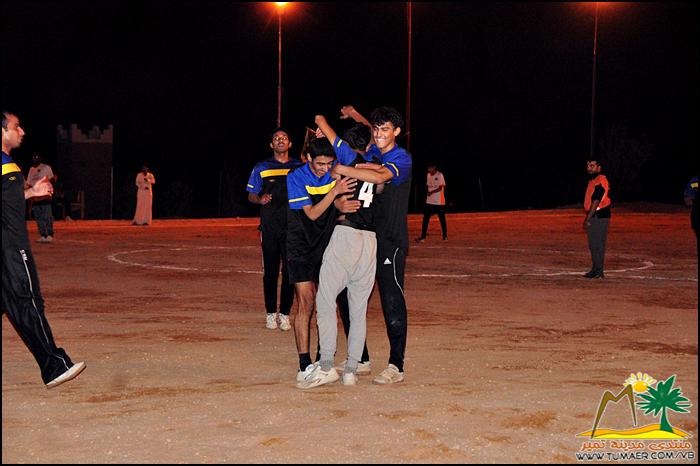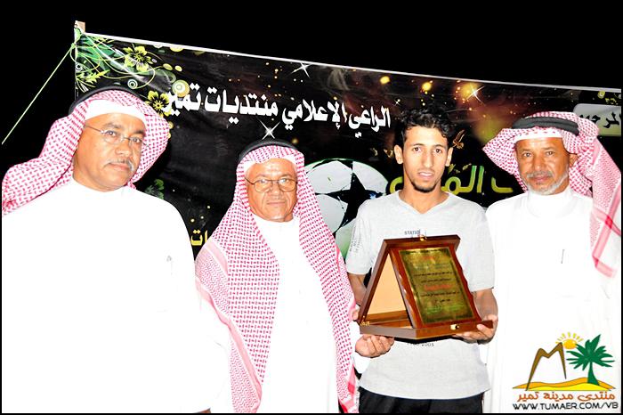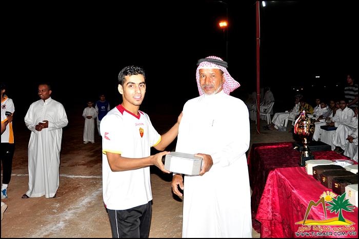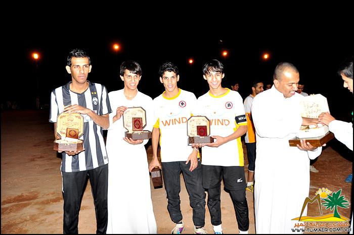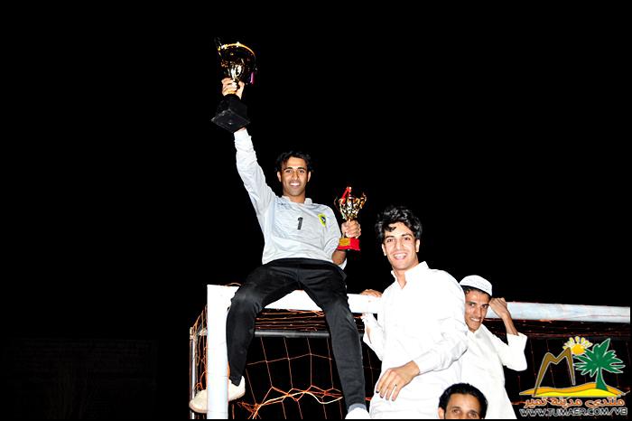 اللجنة الإعلامية ( ولد العز- ẔṂŊ ĢǍṦě ) بالتعاون مع new_live تصوير عبدالعزيز المناع عبدالرحمن المناع عبداللطيف المناع ( برشلونة Vs روما ) 3 × 1 في مباراة تراقصت على انغامها الجماهير طرباً وفي متعة كروية لاتنتهي عاش الجمهور مباراة نهائية بكل ماتعنيه الكلمة مباراة اشاد بها جميع الحضور لما حملته من تنوع في طرق تسجيل الاهداف وفي بناء الهجمات وفي استعراض المهارات . فريق برشلونة واصل لاعبوه نجوميتهم في الملعب وسيطرتهم على مجريات المباراة فمنذ بداية المباراة بدت النوايا الهجومية واضحه لكلا الفريقين ، بينتجانس لاعبي برشلونة جعل من فرص صناعة الهجمات متعددة حيث تنوعت هجمات الفريق مابين تغلغل من العمق ومابين هجوم من الاطراف وتغلب في الكرات الرأسية على فريق روما استطاع فريق برشلونة تسجيل هدفين خلال مجريات الشوط الاول واستمرت الخطورة البرشلونية في الشوط الثاني الى أن قل عطاء اللاعبين حيث تمكن فريق روما من تسجيل هدف تقليص الفارق بعد خطأ من احد مدافعي فريق برشلونة حيث اسكنها في مرماه بالخطأ وحرص مع هذا الهدف لاعبي روما على تسجيل هدف التعادل وزادو من ضغطهم على مرمى برشلونة الا ان تمكن اللاعب خالد السيحاني من فريق برشلونة من اطلاق رصاصة الرحمة برأسيته على فريق روما حينما سجل الهدف الثالث ومعها تلاشت امال فريق روما الذي حرص لاعبوه في اخر الدقائق على المتعة في اللعب والابتعاد عن الشد النفسي . :: نقاط من اللقاء :: - الشد العصبي والحماس كان طاغيا على معظم لاعبي روما والجماهير المساندة لهم وهو ماانعكس على ادائهم في الملعب حيث ان اللاعبين تفرغوا للاعتراض على قرارات التحكيم وتركوا متعة الكورة التي عودونا عليها في الادوار السابقة . - قاد هذه المباراة حكم الساحة / عبدالعزيز السلطان يساعده الحكمين المساعدين / محمد المناع وعدي المناع . - شهدت المباراة هدف ملغى من حكم المباراة لفريق برشلونة بداعي ان هناك مخالفة سبقت تسجيل الهدف . - غياب البديل الجاهز في فريق روما كان له انعكاس سلبي على الفريق بينما برشلونة كان البديل بمستوى اللاعب الاساسي . - بعض الجماهير من الفريقين خرجت عن النص بترديدها عبارات مستفزة للفريق الاخر ورغم ذلك كانت المباراة ممتعة . - اشهر حكم المباراة / عبدالعزيز السلطان خلال اللقاء كرتين اصفر للاعبي فريق برشلونة عبدالعزيز القديري وخالد السيحاني . - سجل اهداف اللقاء لفريق برشلونة : فيصل السيحاني ( هدفين) ومصعب الشويعر وسجل هدف فريق روما احد مدافعي فريق برشلونة خطأ في مرماه . - حرص اداريي فريق برشلونة على اجراء 3 تغييرات في اخر المباراة لدعم المناطق الخلفية في الفريق ومنطقة وسط الملعب . - اختارت اللجنة الفنية لاعب فريق برشلونة / عبدالعزيز القديري أفضل لاعب في المباراة . الاستاذ/ احمد العبدالله رئيس نادي المجزل والاستاذ/ عبدالعزيز المحيذيف والاستاذ/ عبدالمحسن عبدالهادي المناع والاستاذ/ خالد البرغش مدير منتديات تمير كانوا ضيوفا على نهائي الدورة . ::::::::::::::::: التكريم وحفل العشاء الاستاذ/ إبراهيم عبداللطيف المناع يسلم الاستاذ/ عبدالعزيز المحيذيف درع الجهات المشاركة ( بلدية تمير) الاستاذ/ عبدالعزيز العيسى يتسلم درع الراعي الإعلامي (منتديات تمير) الاستاذ/ عبدالله عبداللطيف المناع يسلم كابتن فريق ليفربول عبدالرحمن المناع درع الفرق المشاركة في الدورة عبدالله نايف كابتن فريق الرويضة يتسلم درع الفرق المشاركة في الدورة الاستاذ/ احمد العبدالله رئيس نادي المجزل بتمير يسلم اداري فريق روما درع الفرق المشاركة في الدورة الاستاذ/ احمد عبداللطيف المناع يسلم جائزة افضل حارس في البطولة ( حارس الرويضة ) استلمها نيابة عنه كابتن الفريق الاستاذ/ عبدالله عبداللطيف المناع والاستاذ/ ابراهيم عبداللطيف المناع يكرمان اخيهم ناصر عبداللطيف المناع صاحب فكرة الدورة نظير ماقام به من جهود في سبيل انجاح الدورة لاعبي فريق روما يتسلمون جوائز المركز الثاني لاعبي روما اثناء تتويجهم بالمركز الثاني وتسلمهم لجوائزه
