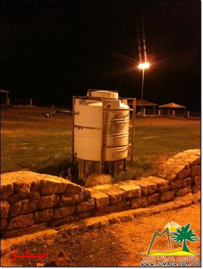 كما تعلم ان الكثير من أهالي تمير وخارجها يذهبون لمنتزه الشلال الأ اننا نعاني من عدم توفير الماء في الدكات مثل بقيه المنتزهات فنامل منكم وضع مثل هذه الخزانات في دكات العوائل والعزاب ليستفيدو منها في الغسيل وغيره.
