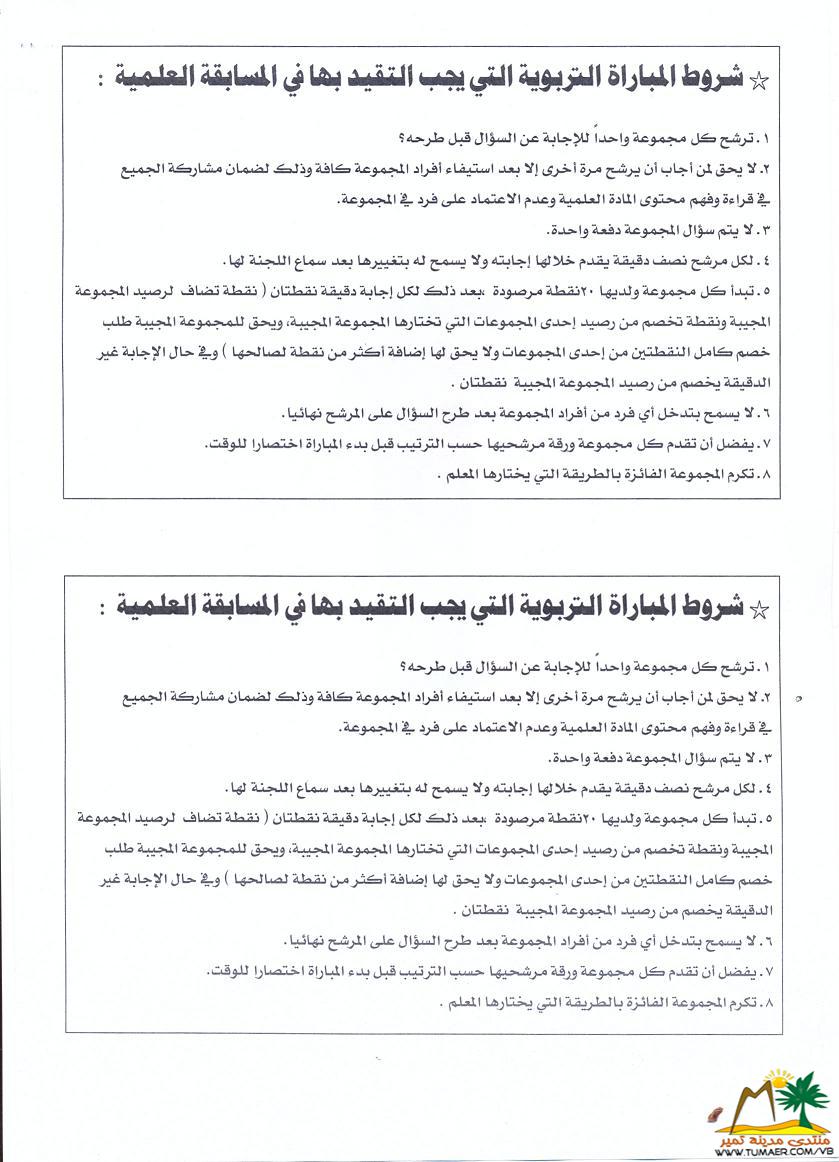 كل الشكر للقآئمين على هذه المسآبقه العلميه .. وبالتوفيق للطلآب وإلى الـآمآم دآئمآ .. |