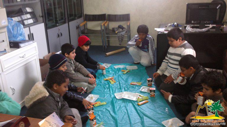 في بادرة جميلة ، و انطلاقاً من تواصلنا مع المجتمع وأبنائنا الطلاب ، تشرف المكتب بزيارة كريمة استقبل فيها أبنائه الطلاب من المدرسة الابتدائية بوسيعة تمير يتقدمهم : الأستاذ / عبدالله بن عبدالعزيز المناع , مدير المدرسة والأستاذ / حماد بن سلطان الريس , المعلم بالمدرسة وكان في استقبالهم سكرتير المكتب التعاوني : أبوبكر الأنصاري و الداعية بالمكتب الشيخ : شمس الضحى 0 وقام الطلاب بجولة داخل المكتب تعرفوا فيها على أقسامه , و أبرز أهداف المكتب وأبرز أعماله ونشاطاته داخل تمير وخارجها و أنشطة الجاليات ، وبعد ذلك جلس الطلاب بمكان الضيافة ، وتم تناول وجبة خفيفة والعصير في جلسة أخوية جميلة ، و بعدها تم توزيع هدية خاصة لكل طالب تتكون من : ( مفكرة تمير لعام 1433هـ , لعبة مناسبة , كرتون بسكويت ) و في نهاية الزيارة ... شكر مدير المدرسة إدارة المكتب على حفاوة الاستقبال 0 و يتقدم المكتب التعاوني للدعوة والإرشاد بالشكر الجزيل لإدارة المدرسة على هذه الزيارة الرائعة ، و يتمنى من جميع المدارس المبادرة بالزيارة فباب المكتب مفتوح للجميع . ونترككم مع بعض الصور الخاصة بالزيارة |