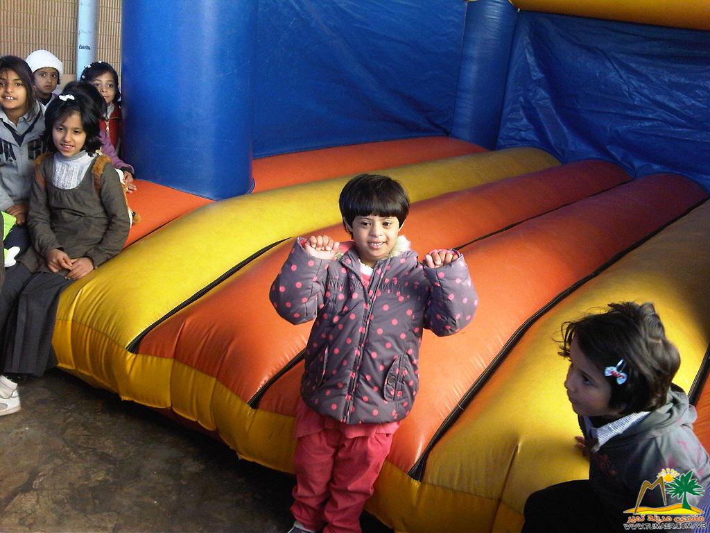 بسم الله الرحمن الرحيم الحمد لله والصلاةوالسلام على أشرف خلق الله محمد ابن عبد الله بداية يسرني ان أرحب بجميع أعضاء منتدى تمير الكرام ونعرض بين أيديكم اليومي التجميعي لبرنامجي (يوم المعاق-و-يوم المعلم) مختتم بطبق خيري والعاب مسلية بداية اليوم كان ترتيب الأركان من قبل الرائدات ومساعداتهم وطالباتهم كل فصل على حده ..وأبهرنا مارأينا من أفكار رائعة ثم بدأ الحفل الخطابي بحضور جميع طالبات المدرسة ومنسوباتها وأمهات طالبات التربية الخاصة وام الطفل ابراهيم العبدالكريم وبدأ الحفل بأيات من الذكر الحكيم تلته طالبة التربية الخاصة// هديل المنيع تلا ذلك كلمة لمديرة المدرسة الأستاذة // عيدة البرغش شكرت من علم وانتج جيل ناجح ذوفكر عالي ملتزم بدينه محافظ على اصالته. بذل كل مايملك من جهد وعطاء ومازال يبذل لنرى كوكبه منيره في هذا الزمن فلهم الأجر من الله والمثوبة والشكر من الناس وتم خلا ذلك تقديم هدايا لمنسوبات المدرسة (تزرعان العطاء فتحصدان الوفاء)..ثم تطرقت للطفل المعاق وواجب كل شخص اتجاهه.وطلبت من الجميع الا يبخلوعليهم بوقتهم ويساعدوهم فيما احتاجو اليه ليسايرو الركب.واختتمت كلمتها بالشكر الجزيل لمن وقف معهم اليوم في يوم المعاق وعام المعلم ثم تلا ذلك كلمة للمعلمة // ذيرة العتيبي معلمة التربية الخاصة تكلمت عن احتياجات الطفل المعاق وواجب الجميع اتجاهه وكان هناك مشاركة من امهات طالبات التربية الخاصة حيث وجه لهم سؤال عن التغيرات التي طرأت علي ابنتهم بعد دخولها المدرسة وكانت الأجابات كالتالي: 1- ام الطالبة تقى الزيد(7)سنوات اولا شكرت الجميع لحسن تعاملهم مع ابنتها وقالت اصبحت تقي تطرق الباب وتسلم وتذكر الله وتذهب لدورة المياة بمفردها احياناً وتقول التغير ملحوظ فلكم كل الشكر. ثم قدمت هدايا لطالبات التربية الخاصة فبارك الله فيها على تلك البادرة 2- ام الطالبة مي المناع(7) سنوات تغيرت للأفضل تستأذن تختلط بالناس تسمي تذكر الله استفادت الكثير يكفينا اختلاطها بالناس بدون اهلها وشكرت الجميع على حسن التعامل والتعاون 3- ام الطالبة جواهر حباب(15)سنة تعلمت القرأة والكتابة القليل ولله الحمد تقرأ بعض الايات ترتب نفسها وتساعدني بالبيت شكرت واثنت على الجميع تلا ذلك كلمة لأم الطفل ابراهيم العبدالكريم تكلمت عن التعب النفسي والجسدي للأسرة التي رزقت بطفل معاق وتكلمت عن املها لوجود معلم تخاطب لأبنها تلا ذلك تقديم الهدايا من طالبات العام لطالبات التربية الخاصة ..ولفت انتباهنا النظرات البريئة الفرحة بذلك الحب وفي النهاية كان هناك نشيد لطالبات التربية الخاصة مي المناع وجواهر حباب واختتم الحفل بالشكر لجميع الحضور بعد ذلك بدأ الطبق الخيري والمسلي نال على إستحسان الجميع كل الشكر لمن تعب واجتهد ...واخلص نترككم مع الصور لتوضح ماسبق ذكره |